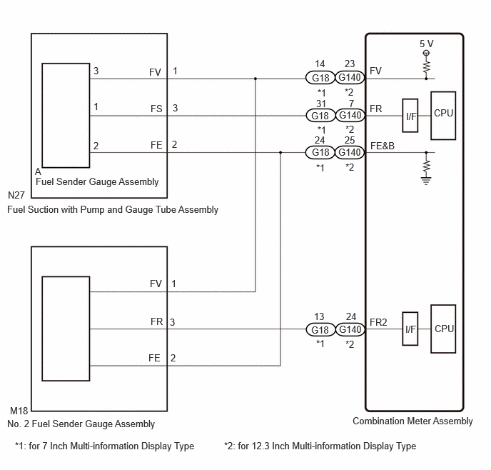 • Voltage signal from No. 2 fuel sender gauge assembly is 4.7 V or more